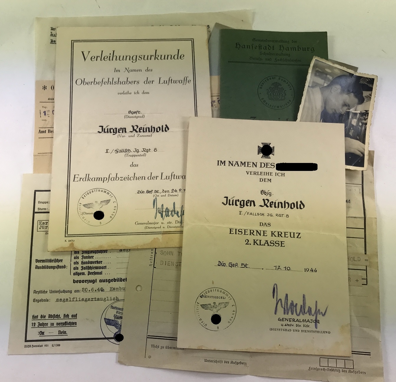 Urkunden und Papiere des Obergefreiten Jürgen Reinhold. Er diente in der 2. Kompanie des Fallschirmjägerregiment 8.