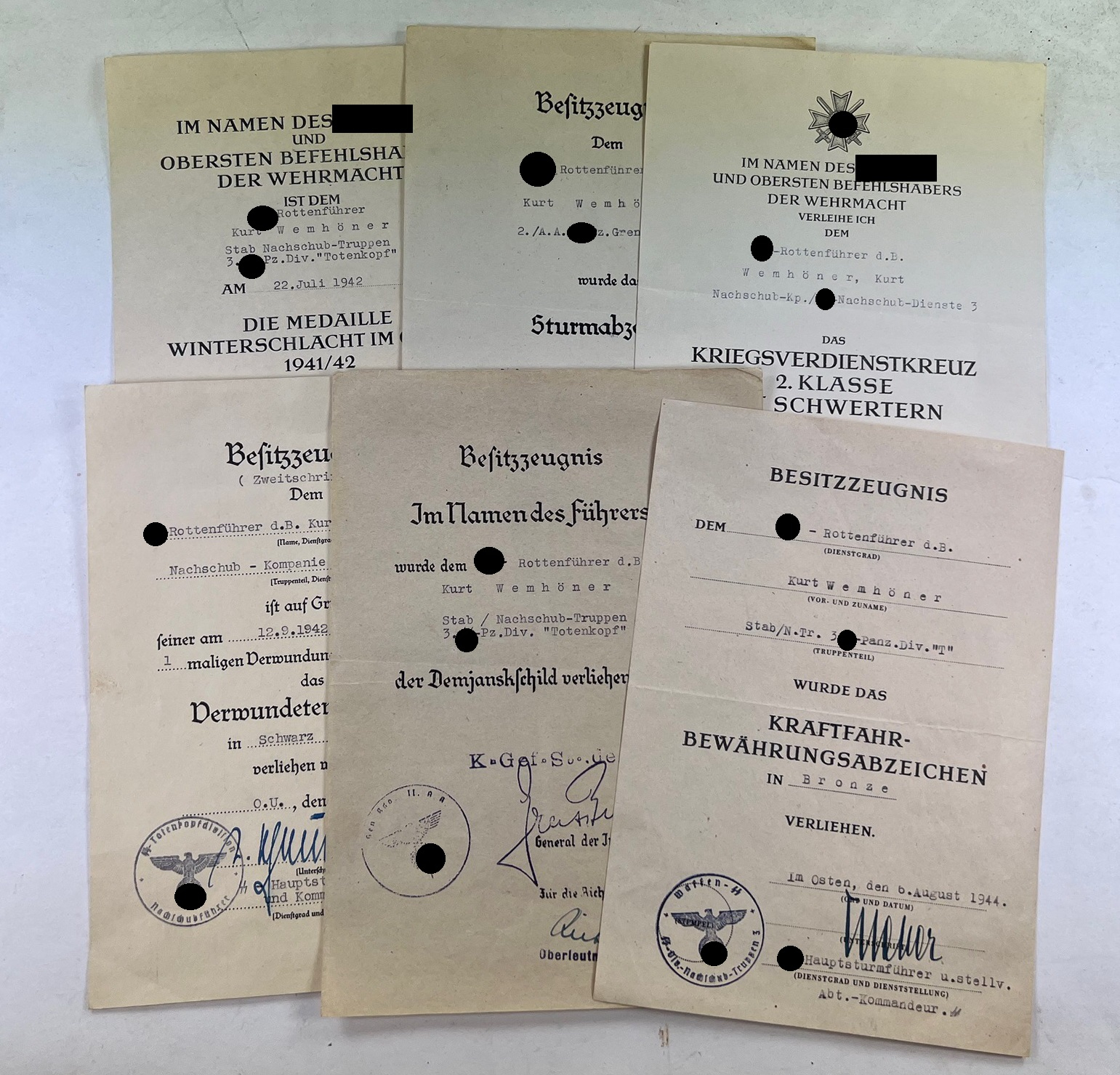 Urkunden Gruppe Waffen SS Division Totenkopf
