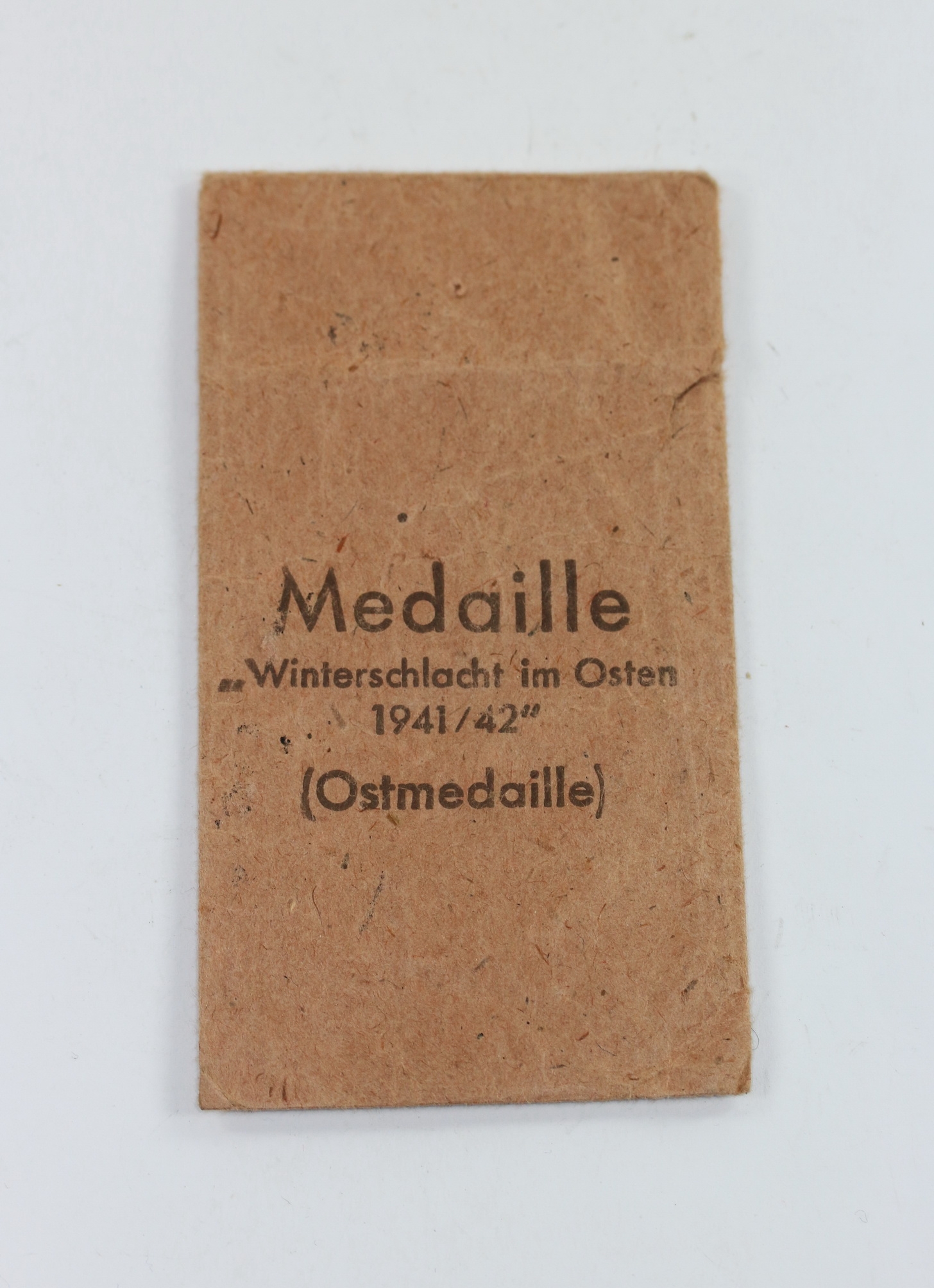 Sehr guter, nur leicht gebrauchter Zustand. Auf der Vorderseite der Aufdruck „Medaille „Winterschlacht im Osten 1941/42″ (Ostmedaille)“. Rückseitig der Hersteller Aufdruck „Rudolf Souval Wien 62/VII“.