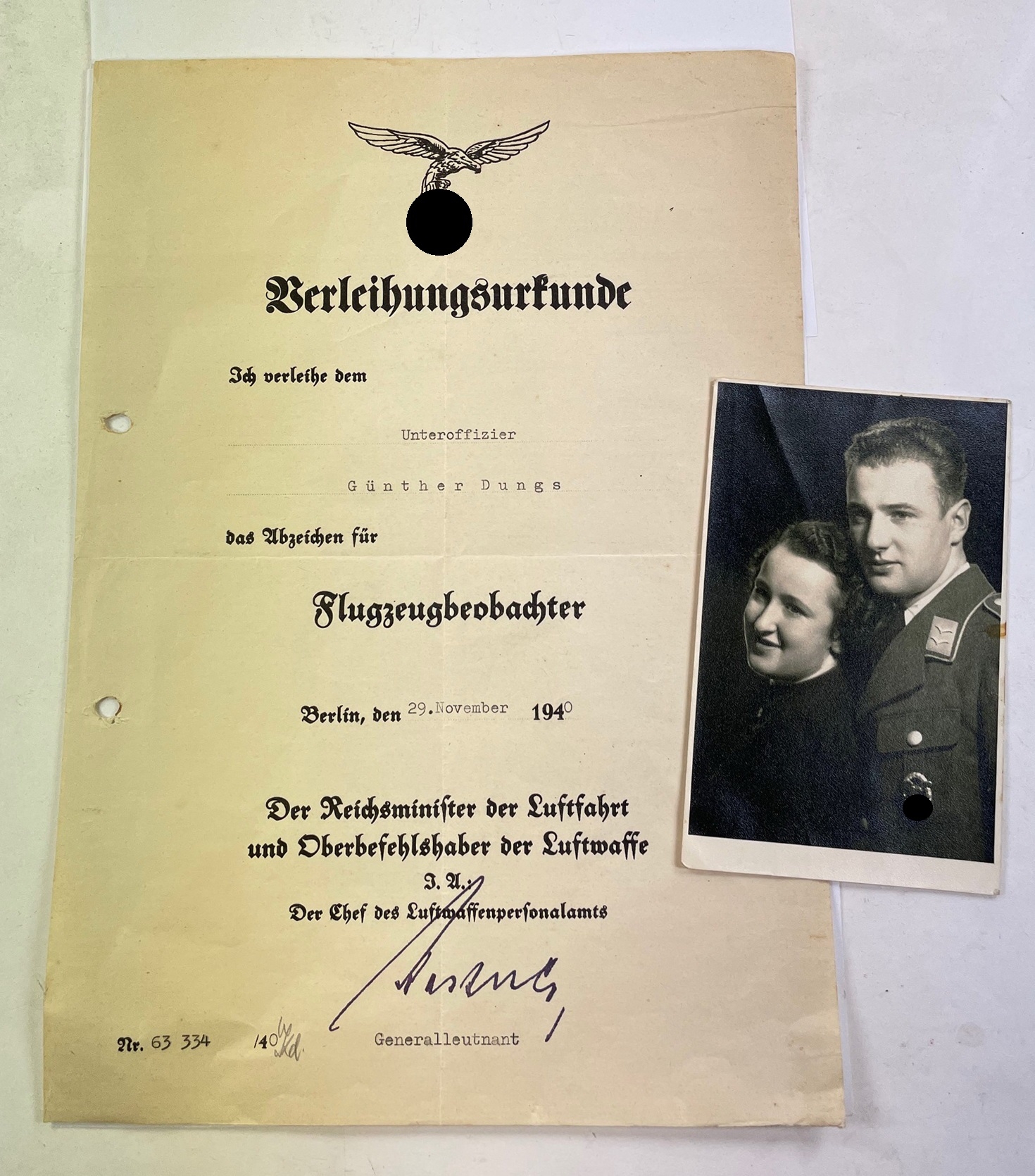 DIN A-4, sehr guter, nur leicht gebrauchter Zustand. Dazu ein Foto des Unteroffiziers mit Abzeichen.
