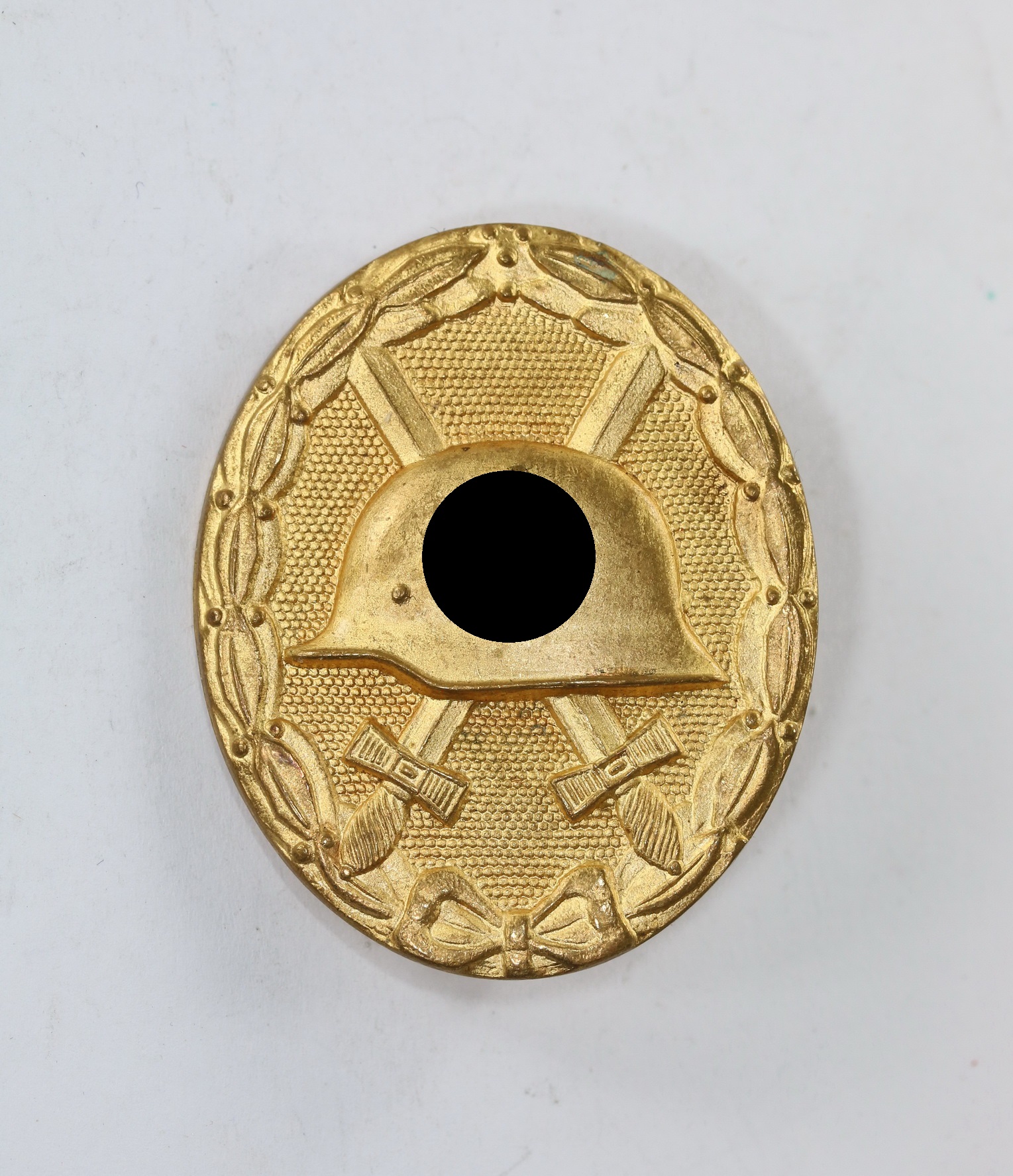 Buntmetall, excellenter, nahezu ungetragener Zustand. Mit vollständiger, strahlender Vergoldung. Mit Hersteller „L54“ für die Firma Schauerte & Höhfeld, Lüdenscheid.