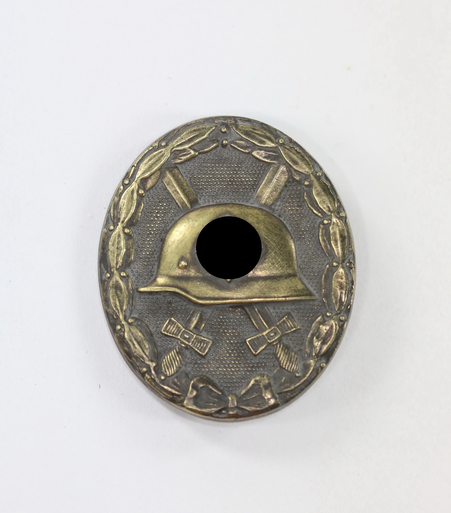 Buntmetall, sehr guter, leicht getragener Zustand. Mit schöner Schwärzung. Ohne Hersteller, aber eine bakannte Variante.