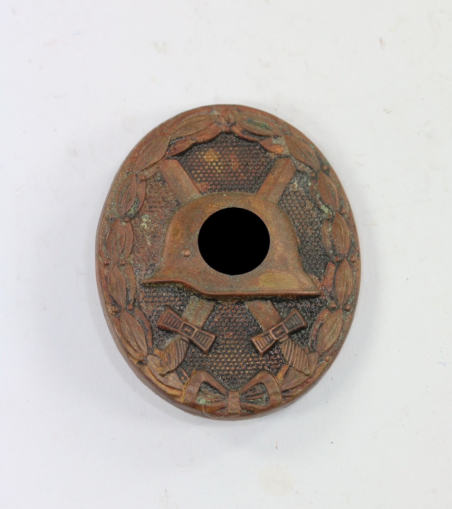 Buntmetall, sehr guter, nahe zu ungetragener Zustand. Mit fast vollständiger Schwärzung. Ohne Hersteller, aber eine bekannte Variante.