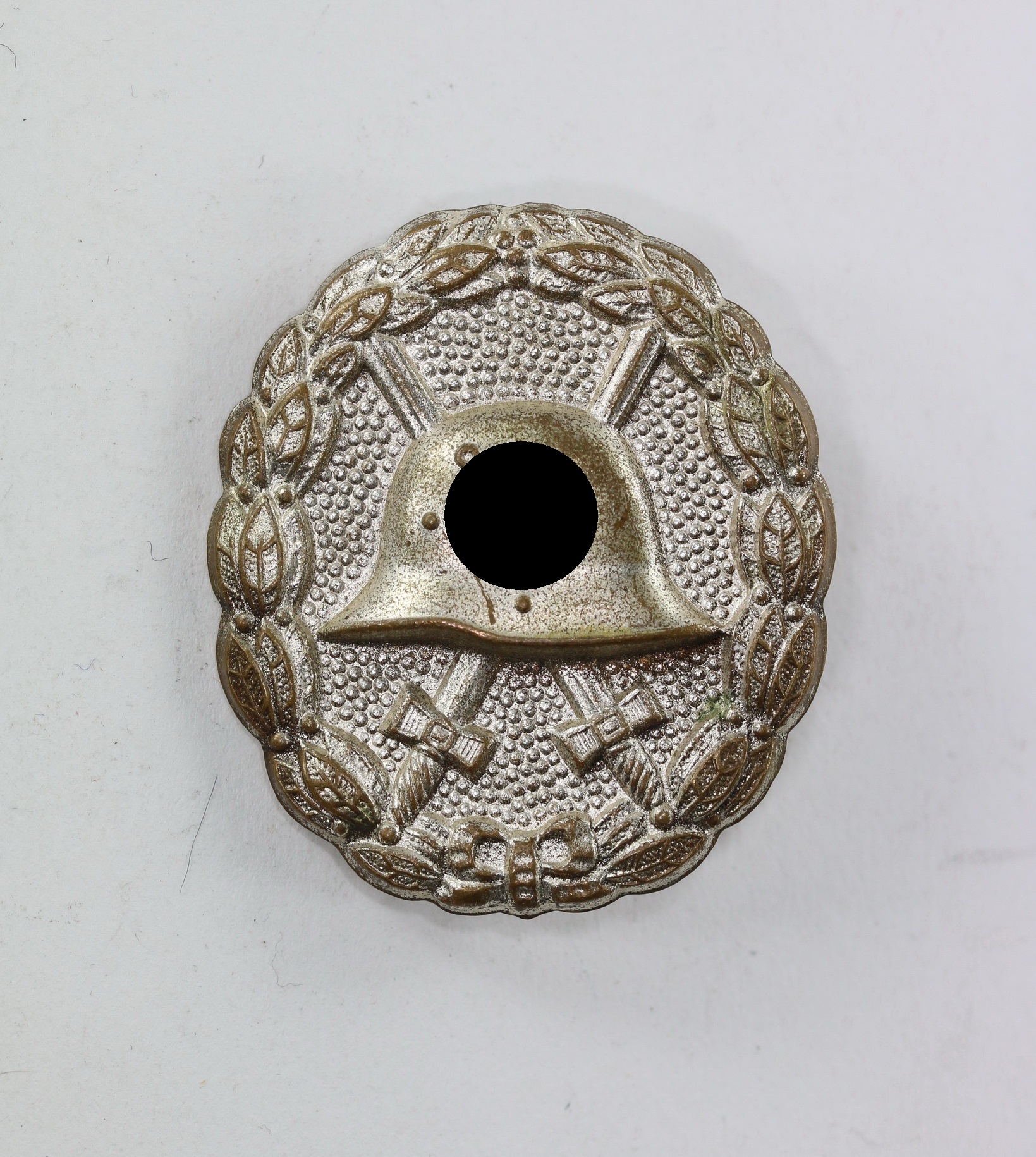 Buntmetall, excellenter, ungetragener Zustand. Mit vollständiger, frostiger Versilberung. Ohne Hersteller, aber eine bekannte Variante.