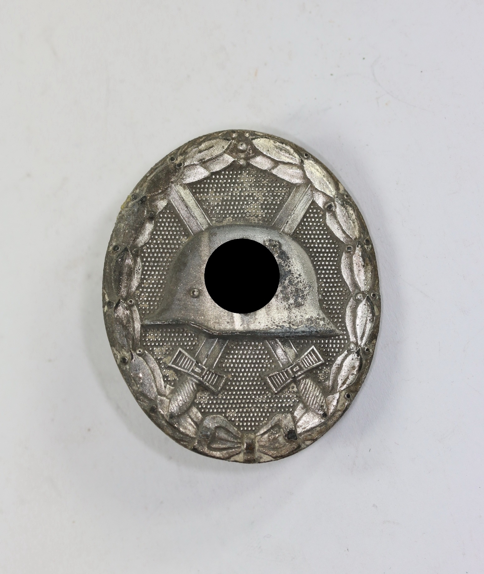 Zink, sehr guter, leichtl getragener Zustand. Mit vollständiger Versilberung. Ohne Hersteller, aber eine bekannte Variante.