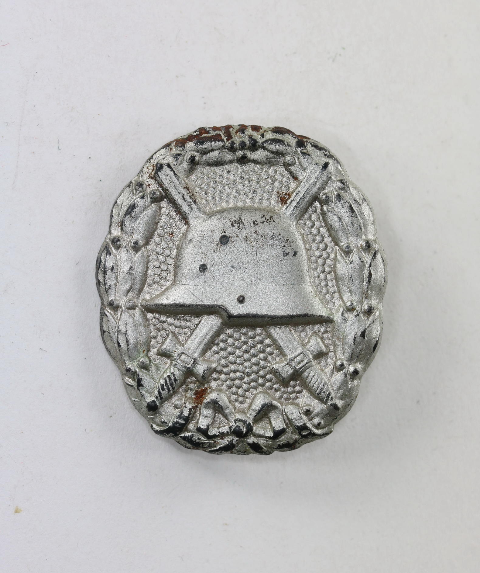 Eisen, sehr guter, nur minimal ungetragener Zustand. Mit vollständiger Versilberung. Ohne Hersteller, aber eine bekannte Variante. Mit breiter Nadel.