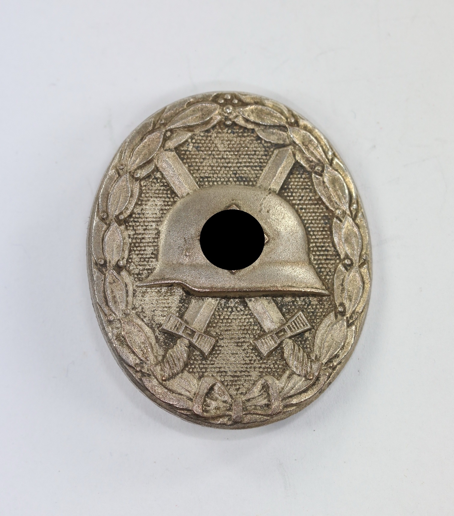 Zink, sehr guter, nahe zu ungetragener Zustand. Mit vollständiger Versilberung, mit leichten Ansätzen von Patina. Ohne Hersteller, aber eine bekannte Variante die der Firma Deschler & Sohn, München (L/10) zugeordnet wird. Siehe GCA-Datenbank.