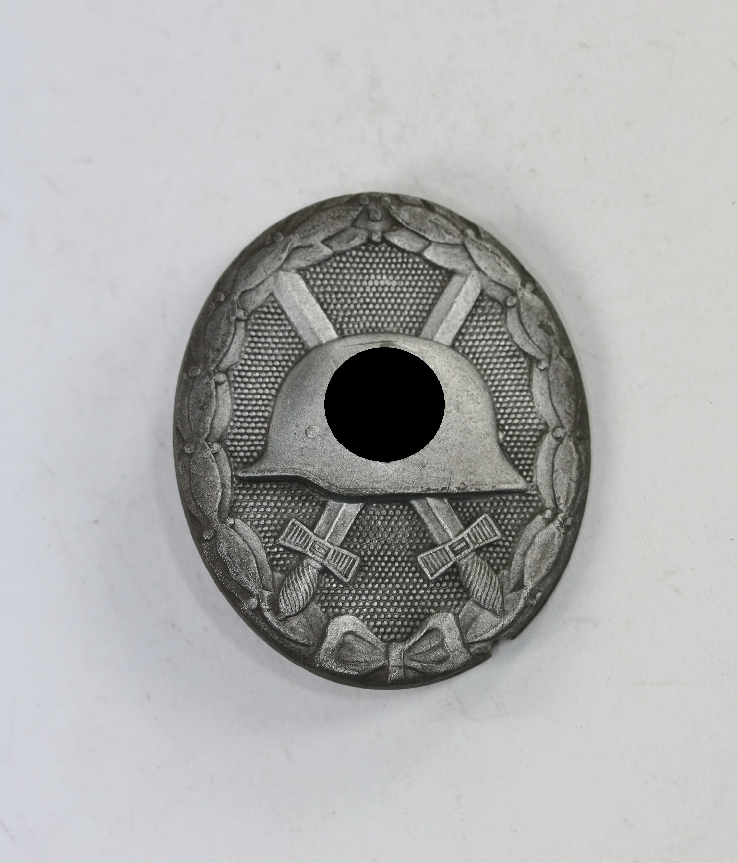 Zink, sehr guter, leicht getragener Zustand. Mit vollständiger Versilberung. Mit Hersteller „L/13“ für die Firma Paul Meybauer, Berlin.
