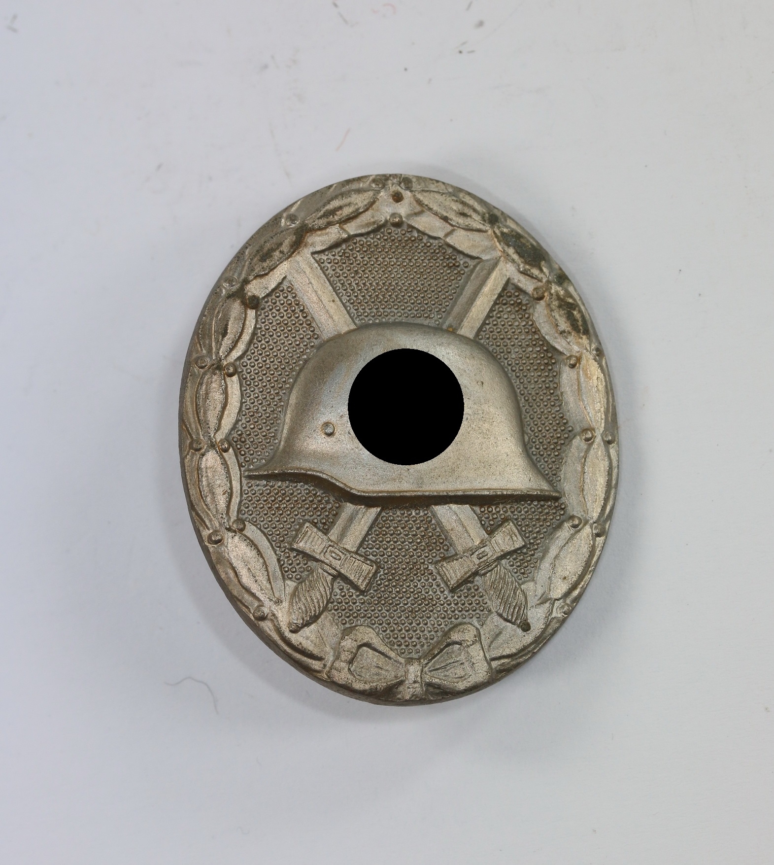 Zink, sehr guter, ungetragener Zustand. Mit fast vollständiger Versilberung. Mit Hersteller „L/14“ für die Firma Friedrich Orth, Wien. Siege GCA Datenbank.