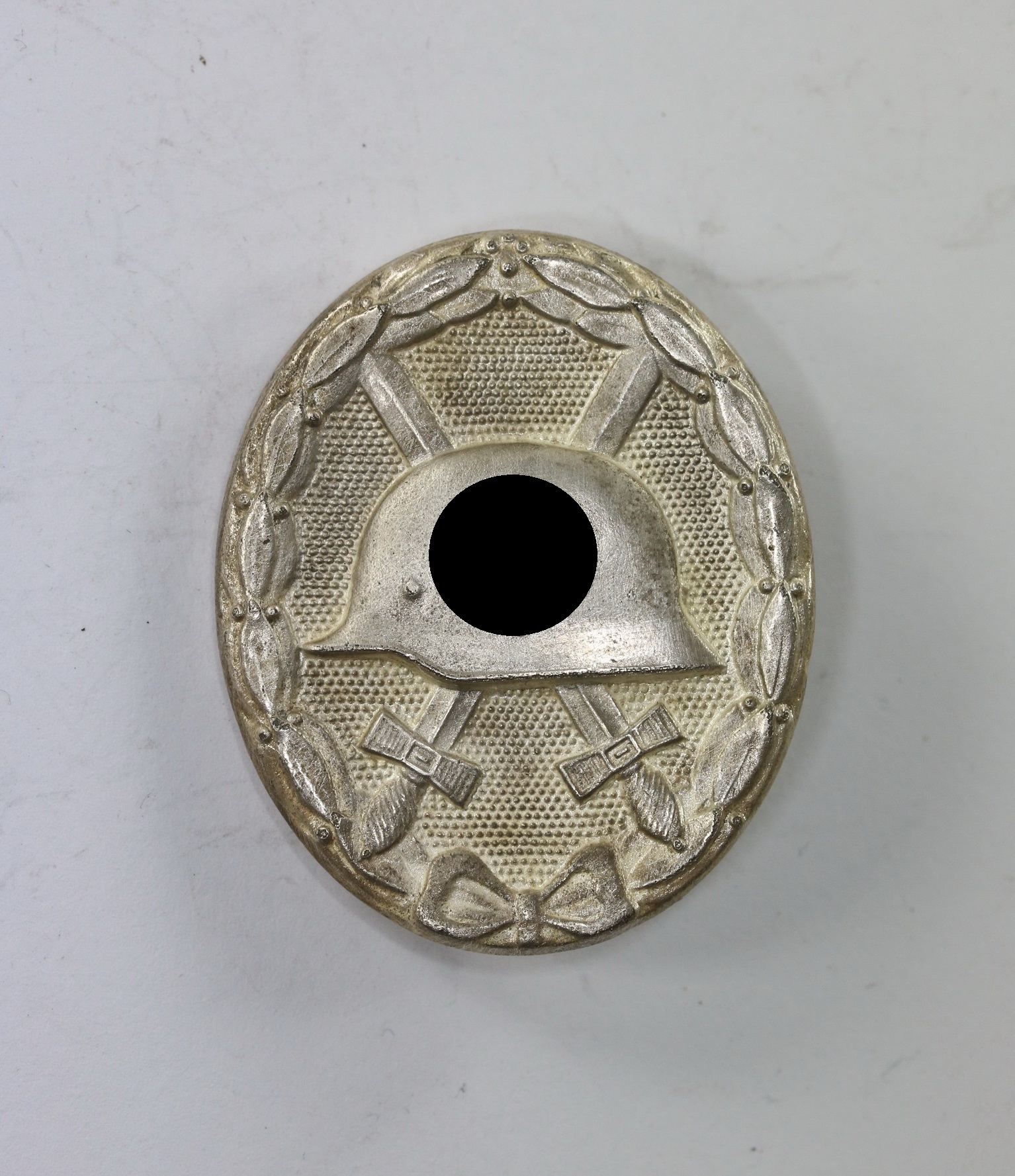 Zink, sehr guter, nur minimal getragener Zustand. Mit vollständiger Versilberung. Ohne Hersteller, aber eine bekannte Variante.