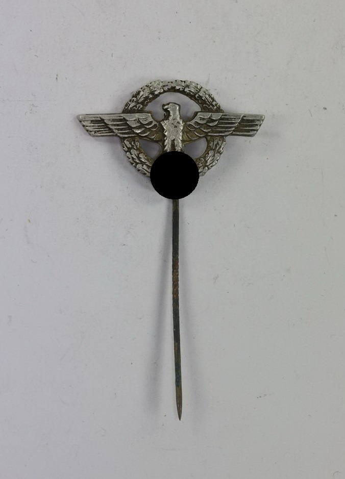 Aluminium, sehr guter, nur leicht getragener Zustand. Ohne Hersteller, Markierung, aber eine bekannte Variante. Mit eingequetschter Nadel.