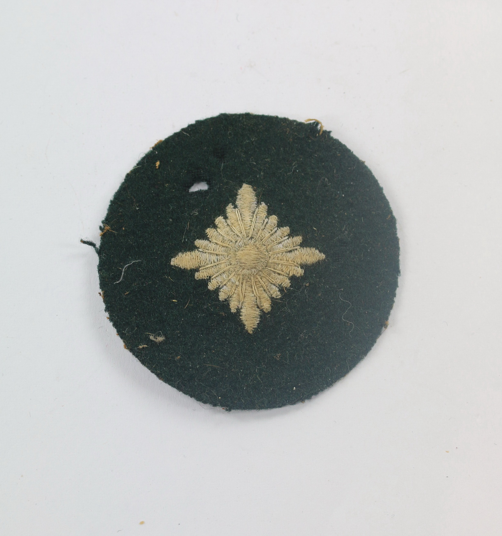 Auf dunkelgrünem Tuch, sehr guter, ungetragener Zustand. Mit Mottenloch!