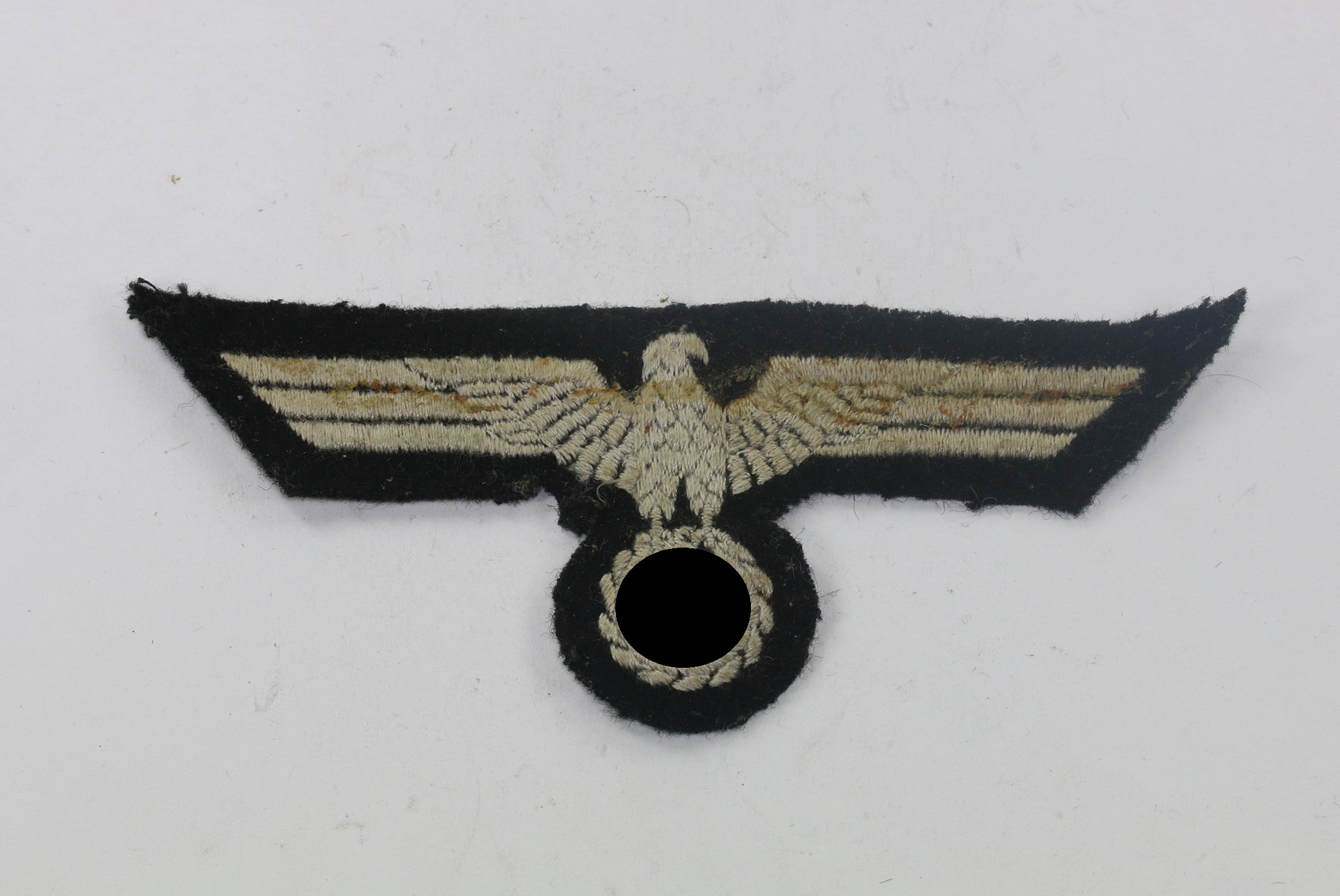 Maschinen gestickt, sehr guter, leicht gebrauchter Zustand. Leicht angeschmutz, der Adler war in einen Fotoalbum aufgeklebt.