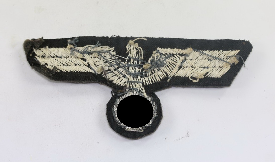 Silberner Metallfaden, handgestickt auf grauen Tuch. Sehr guter, ungetragener Zustand.