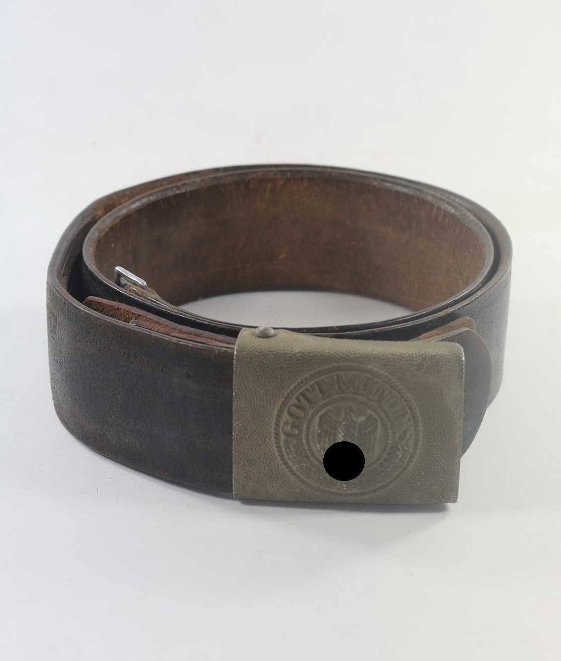 Der Riemen in einem sehr guten, leicht getragenen Zustand. Länge 95 cm, auch entsprechend gestempelt. Der Riemen gestempelt mit „B.A.Bn.“.