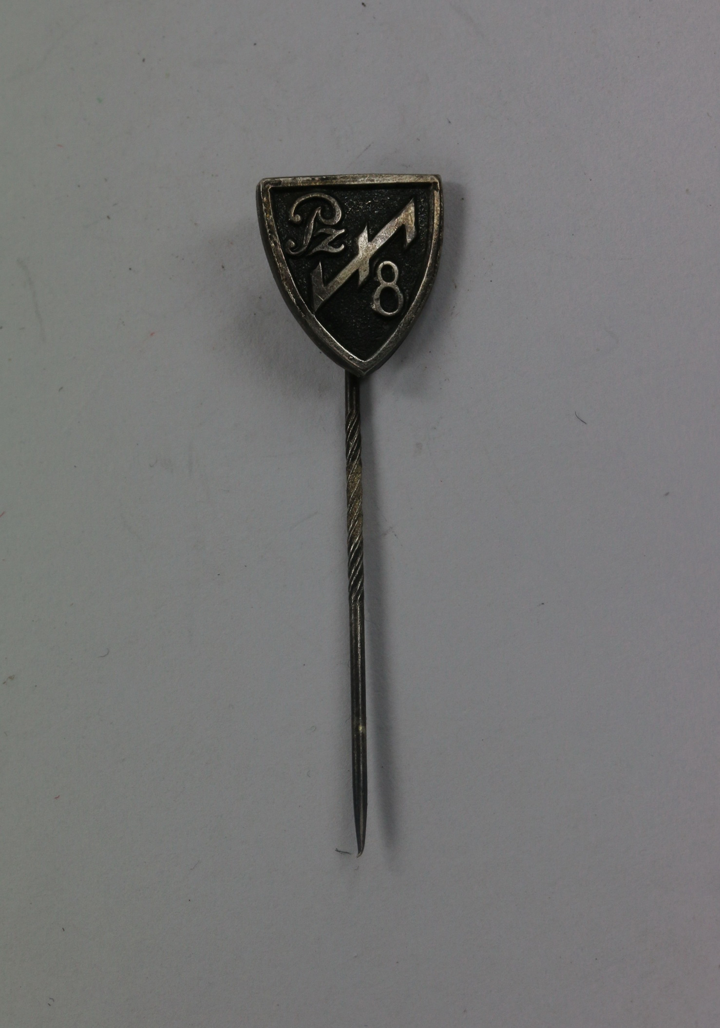 Zink versilbert, sehr guter, nur minimal getragener Zustand. Mit schöner unberührter Patina.