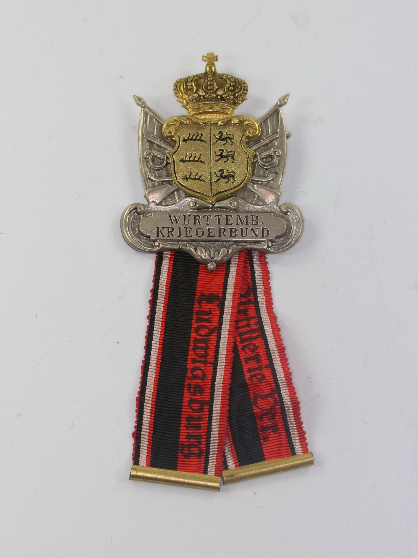 Blechabzeichen mit zwei Bändern, sehr guter, nur minimal getragener Zustand. Mit Hersteller „W. Mayer & F. Wilhelm Stuttgart“.