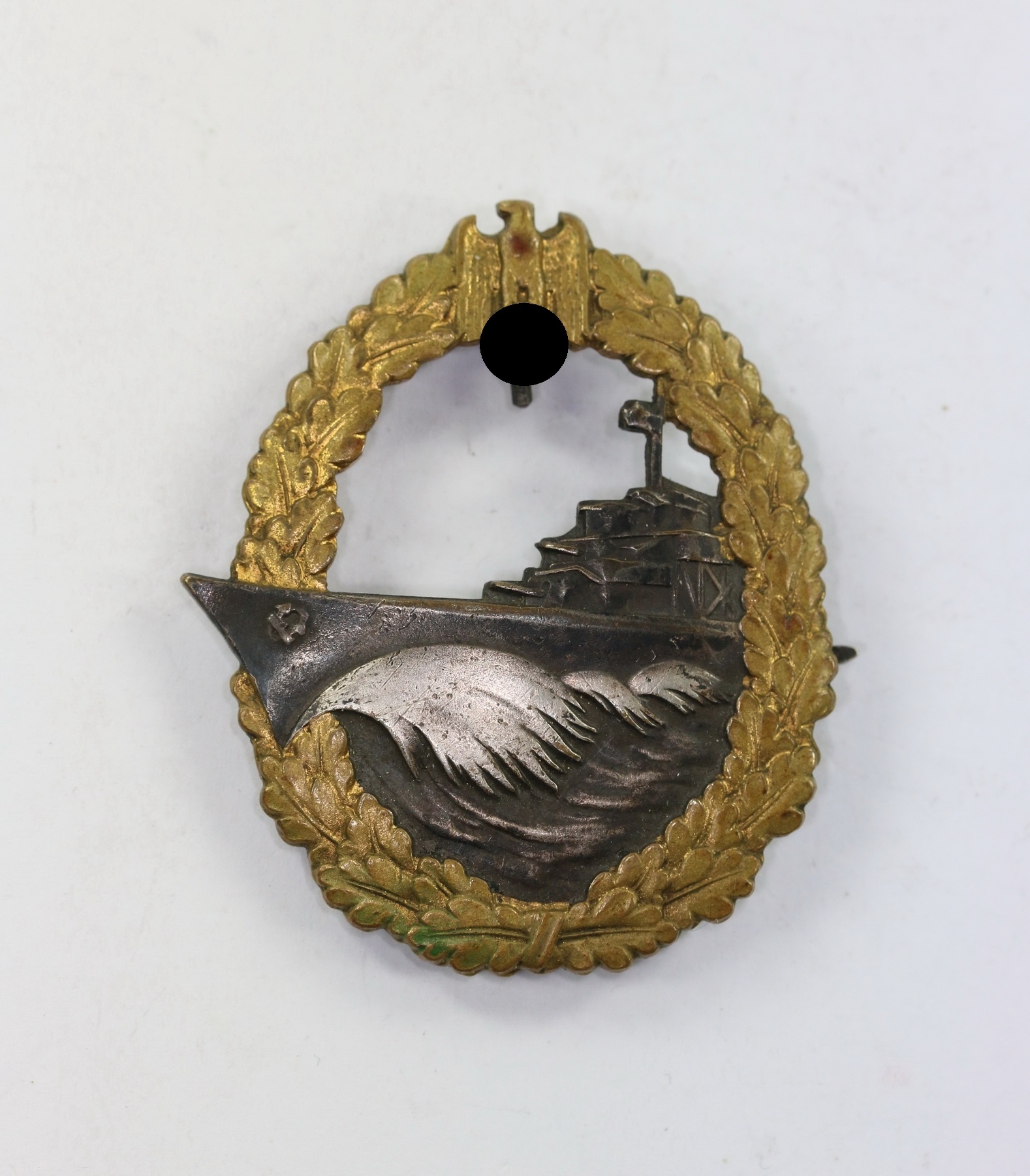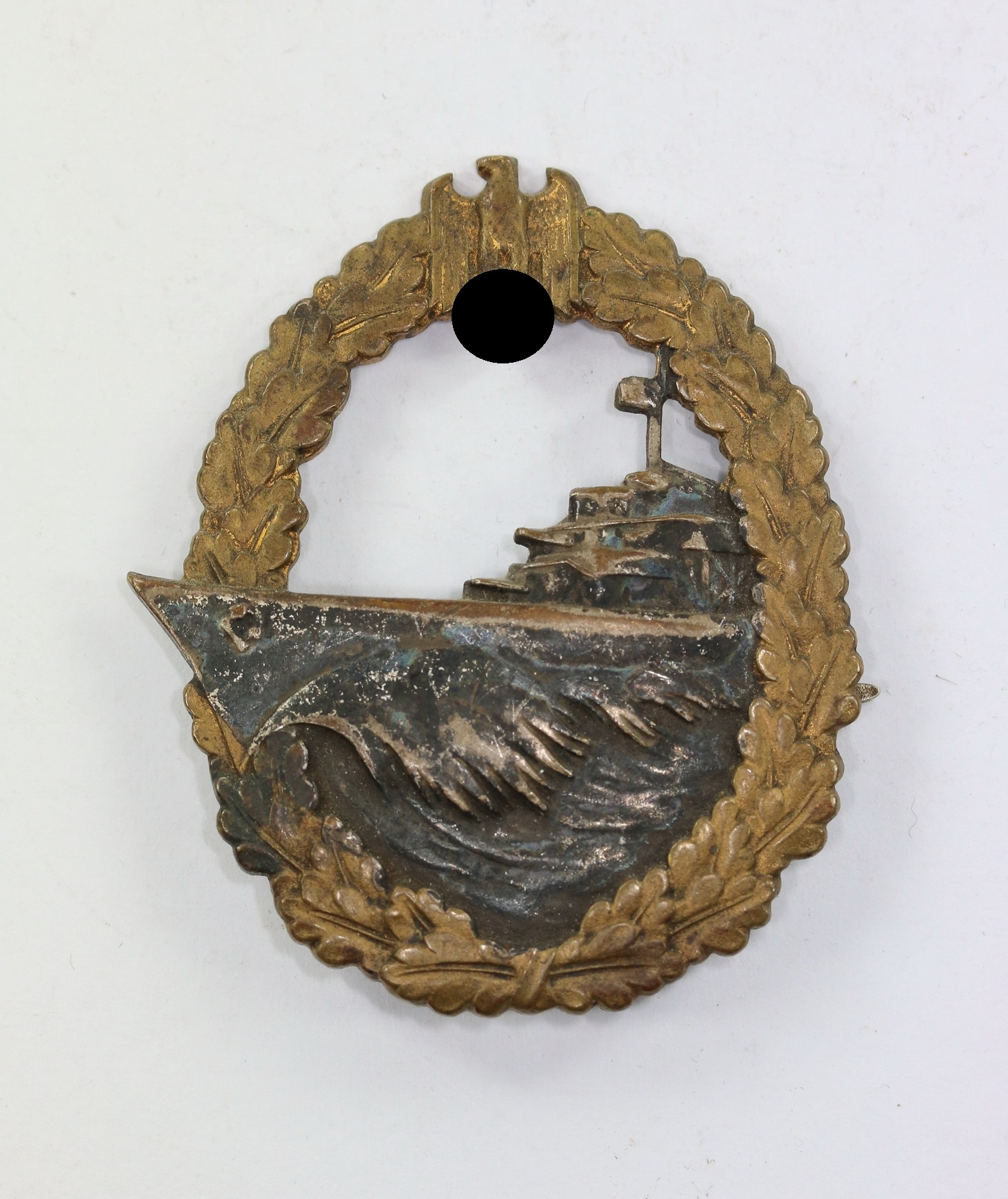 Zink, sehr guter, leicht getragener Zustand. Mit Hersteller „Schwerin Berlin 68“. Siehe Weber/Skora, Die Kriegsabzeichen der Kriegsmarine.