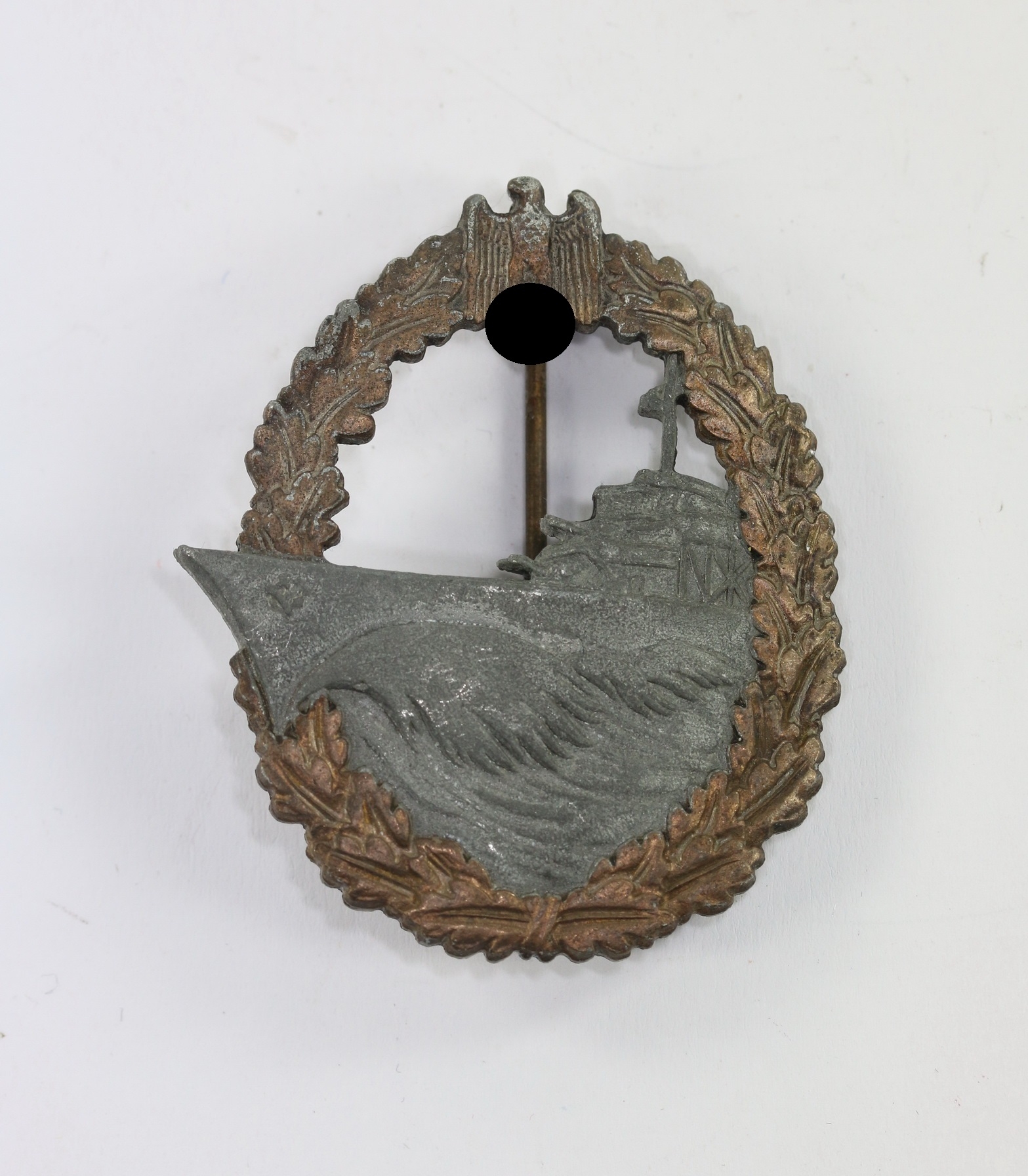 Zink, sehr guter, ungetragener Zustand. Mit leichter Patina. Mit Hersteller „W.H.“ für die Firma Wilhelm Hobacher, Wien. Siehe Weber/Skora, Die Kriegsabzeichen der Kriegsmarine.